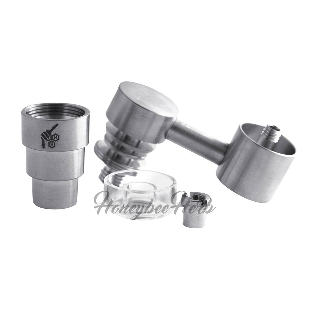 With its Grade 2 Titanium construction, you'll find the Titanium 4-in-1 Sidecar Hybrid Banger is beyond durable. And the 22.5mm quartz dish is going to allow you to blast through some of the biggest slabs of concentrate you can take. And if yours ever breaks, we have some super dope spare dishes to fill that void! These fit 10mm, 14mm, and 18mm joints, and they're also compatible with Male and Female joints. With this much versatility, you already know it's going to fit your favorite rig! And if you have a 25mm carb cap, it's likely going to be compatible with that as well!
